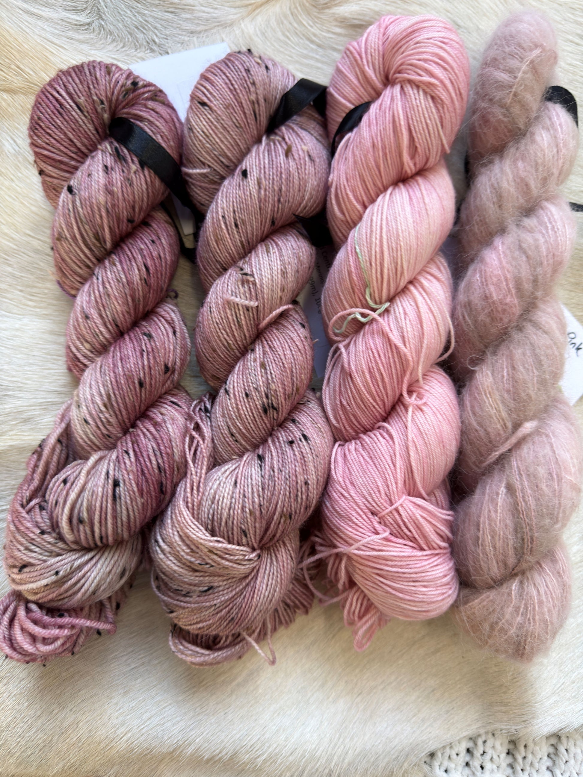 A light variegated pastel pink with hints of grungy brown. IYKYK
