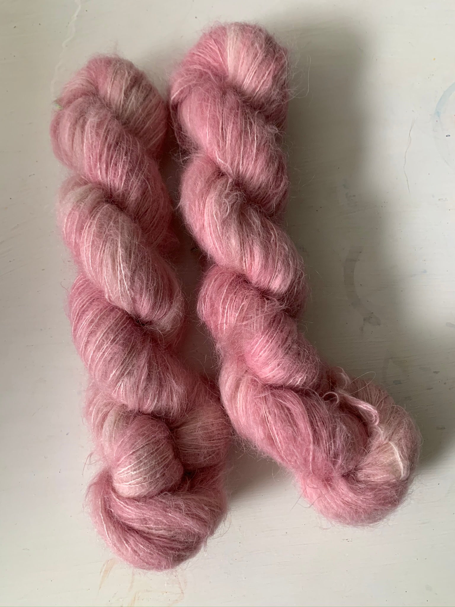A light variegated pastel pink with hints of grungy brown. IYKYK